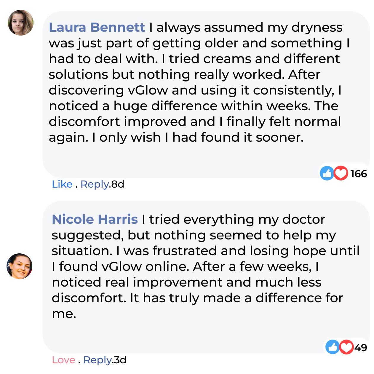 With consistent use, 3 times per week for 4-6 weeks, enjoy improved lubrication, comfort, and confidence.